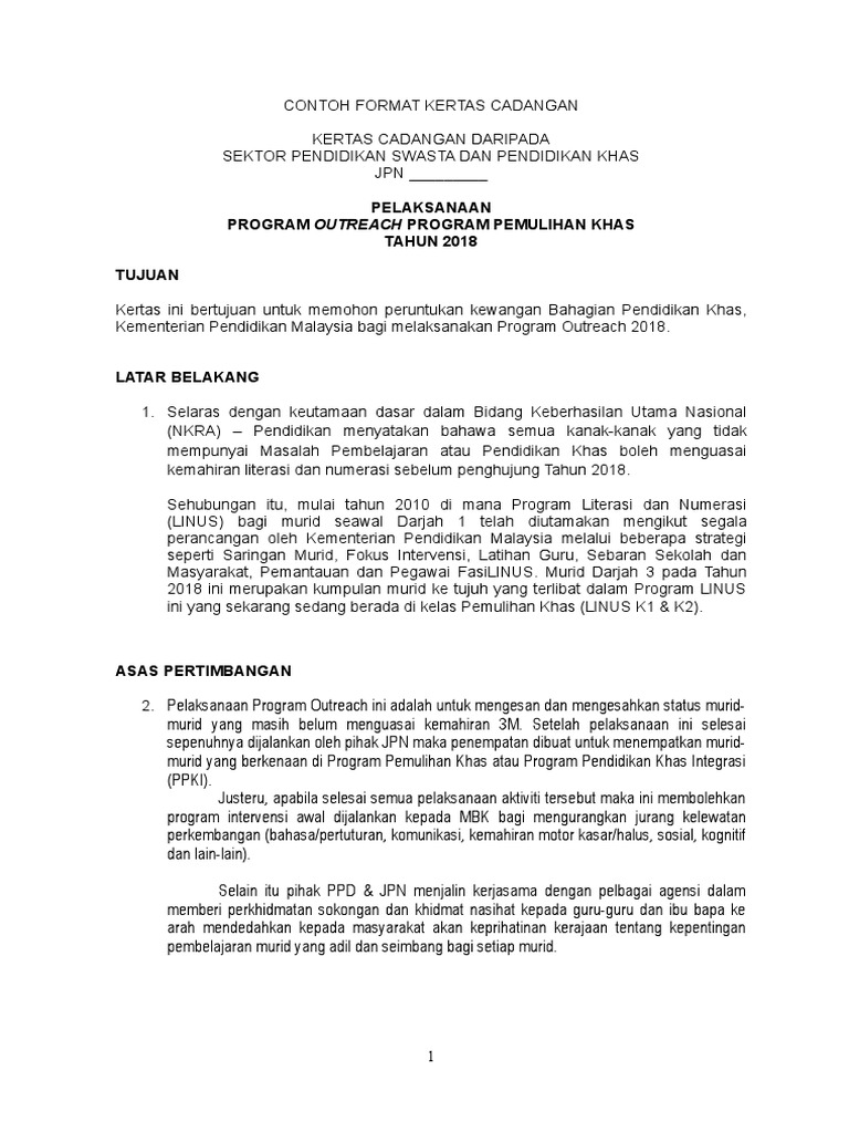 Contoh Kertas Cadangan Pelaksanaan Program Outreach Linus2 0 2018 Ppd Jpn Pdf